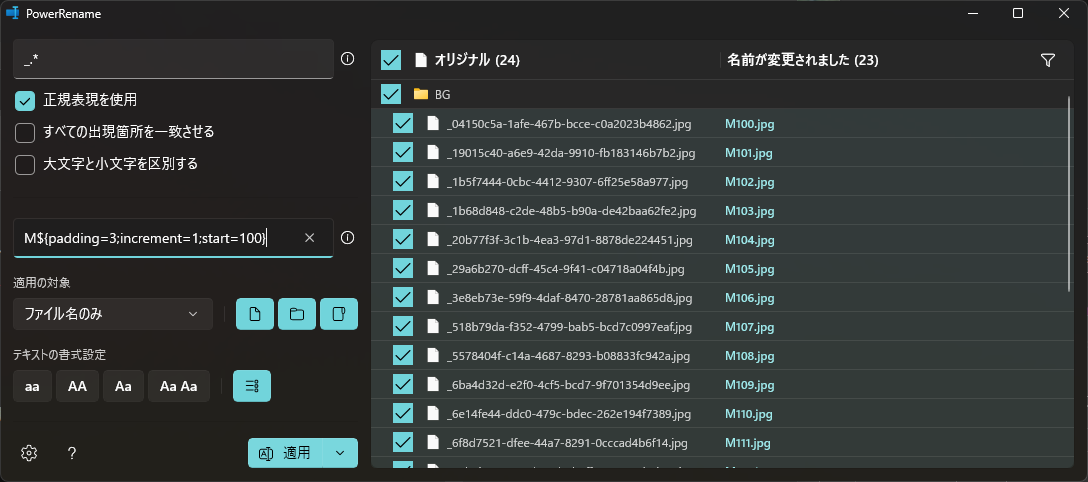 PowerRename を使ってファイル名を一括で変更 2024/02/18